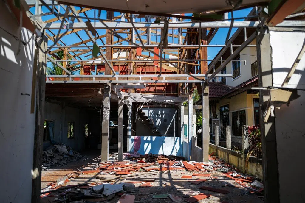 柬埔寨官员说,这些破坏是泰国军队发动的重炮轰击和空袭造成的。