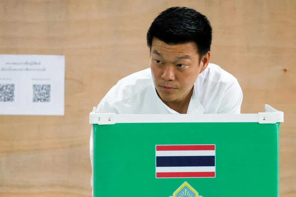 泰国人民党领袖兼首相候选人那他蓬星期天(2月8日)上午在曼谷一处投票站投票,并表示,今天是人民行使权利、发出自己声音的日子。