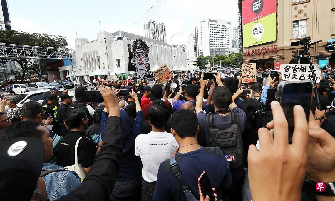 (吉隆坡综合讯)马来西亚反贪污委员会主席阿占巴基涉超额持股风波发酵,约200名民众上街游行,要求当局逮捕他。