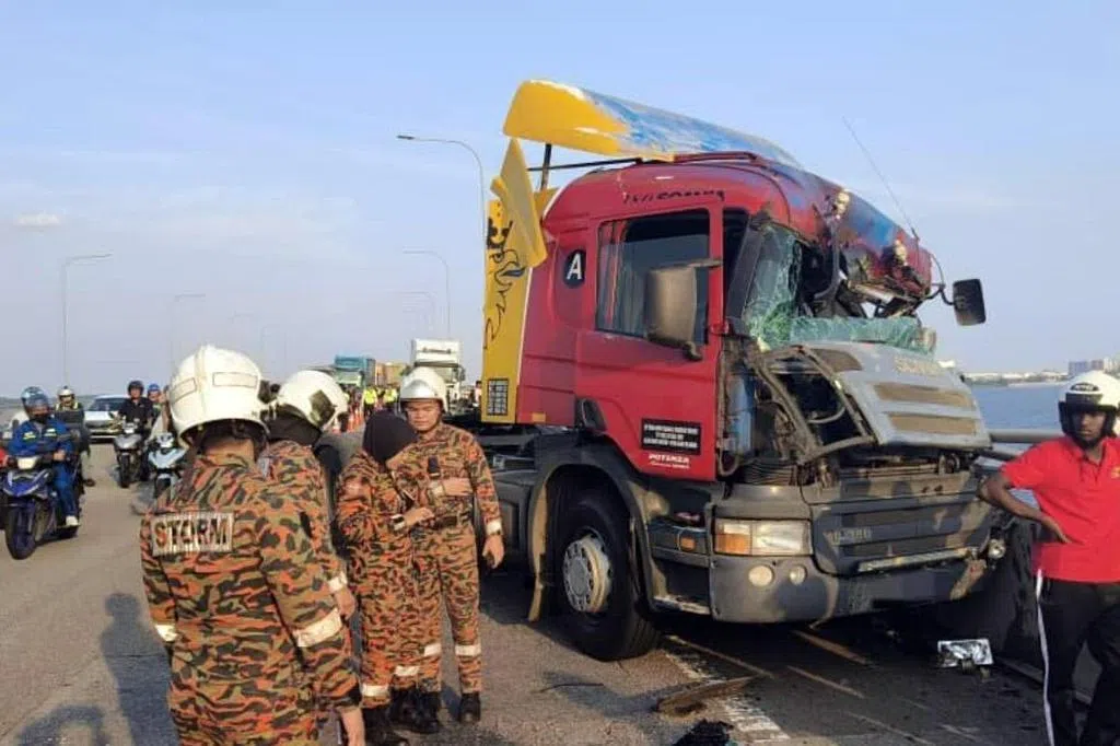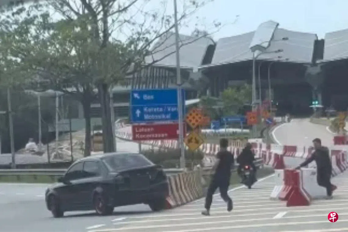 一辆马来西亚注册汽车在新马第二通道违规驶入重型车辆车道,驾驶员被辅警拦停时却猛踩油门,撞上检查站围栏和交通锥后,逃往新加坡方向。马来西亚警方正追查驾驶员身份。