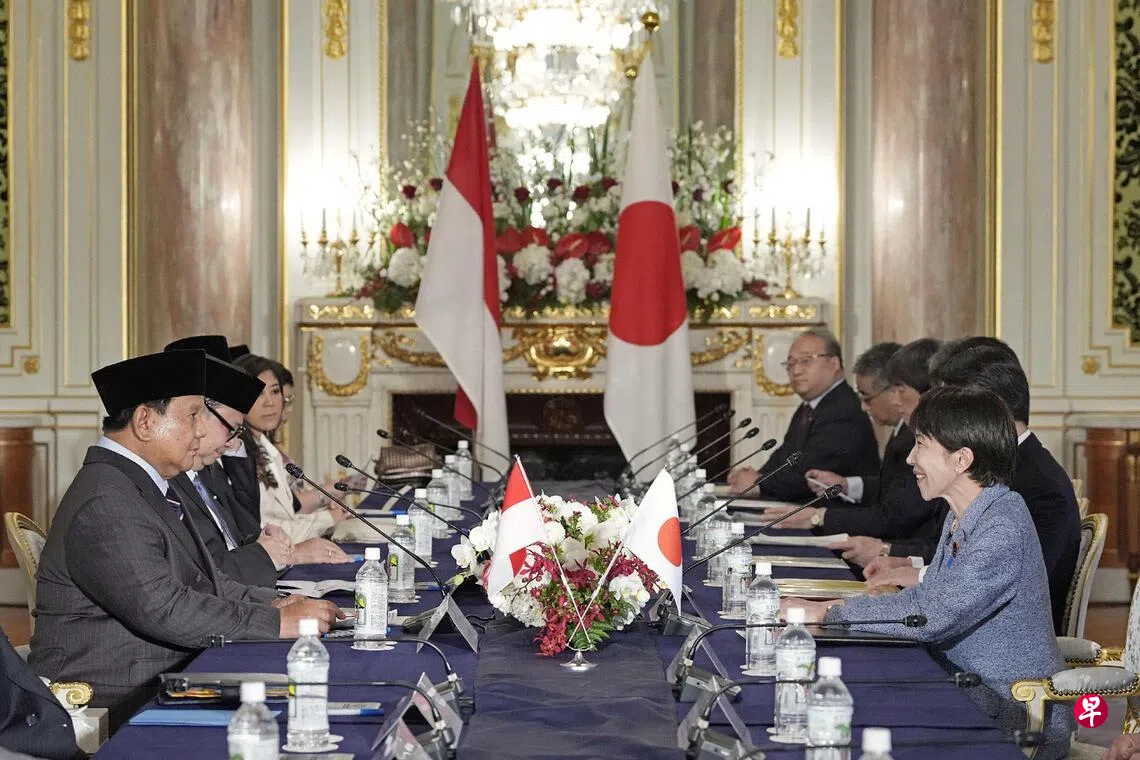 日本首相高市早苗星期二(3月31日)在东京与到访的印尼总统普拉博沃举行会谈。两人就推进经济与安全保障领域的具体合作达成一致,并讨论了在人工智能、防灾减碳等领域的官方发展援助合作,同时还就推进日本自卫队与印尼国民军的防务交流,以及伊朗封锁霍尔木兹海峡等中东局势交换意见。