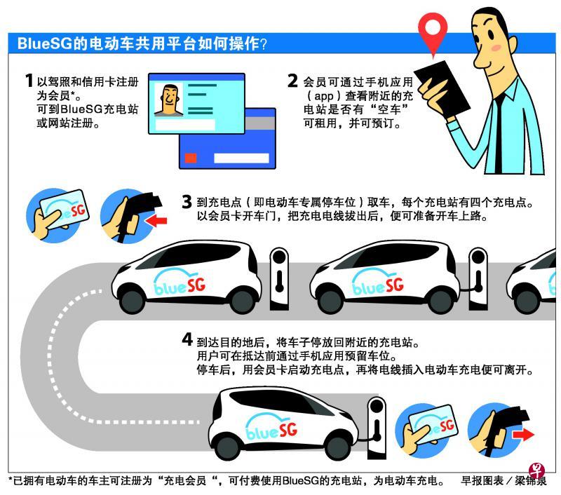 陆路交通管理局和经济发展局今年6月底与法国波洛莱(Bollore)集团子公司BlueSG签署协议,委任BlueSG在未来10年提供电动车共用服务。