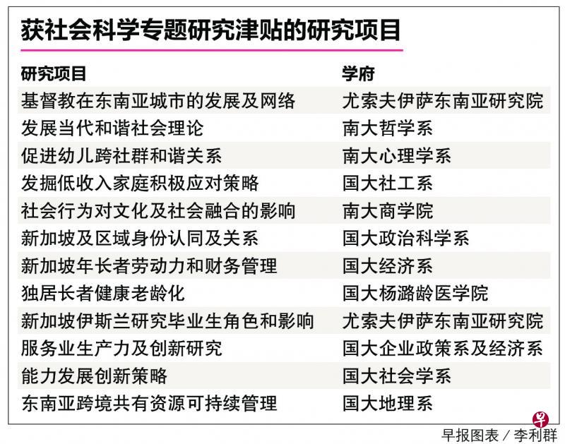 社会科学研究理事会下来三至五年拨款2100万元,资助本地学界展开12项社会科学研究项目,涵盖人口老龄化、学前幼儿培育、扶持低收入家庭、促进社会融合、宗教、环境,以及生产力与创新等课题。