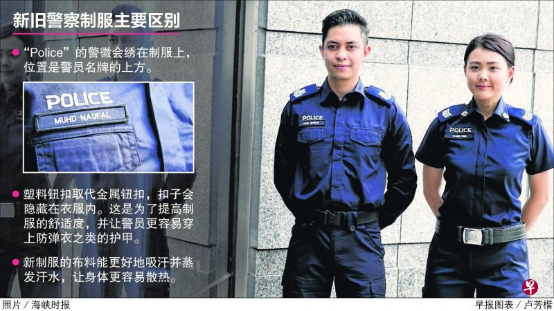 新加坡警察部队的前线执勤警员,将在下周一(16日)换上新制服,铁钮扣会退位,以塑料钮取代,新制服的布料也更轻便透气,让警员能更好地在户外执勤。