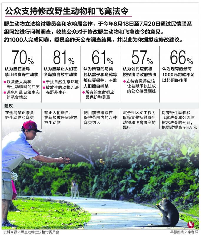 他认为,从调查结果来看,公众对修改野生动物法令非常支持,尤其是喂食和放生动物的部分。