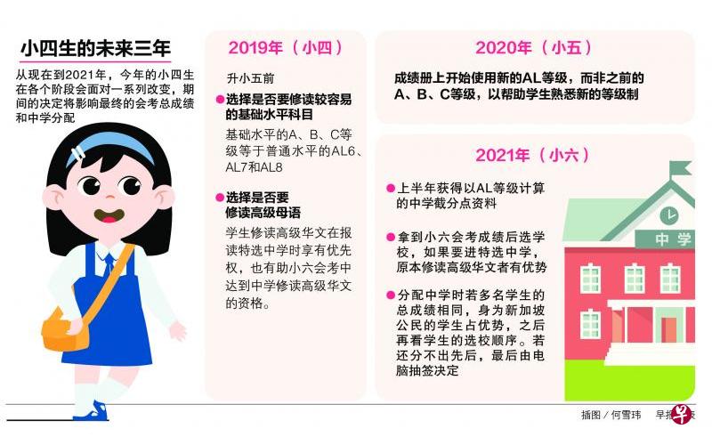小学离校考试改革后年落实,今年小学四年级生将是首批采用新的小六会考积分等级制的学生,教育部公布更多细节,让学生和家长年底选择普通水平或基础水平科目,以及是否选修高级母语时,有多一些参考依据。