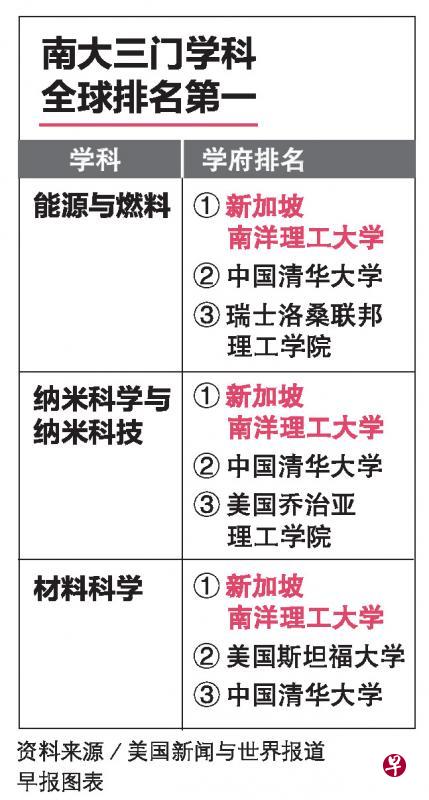 南洋理工大学的能源与燃料、材料科学和纳米科学与纳米科技三门学科,在一项全球大学排行榜中名列全球第一。