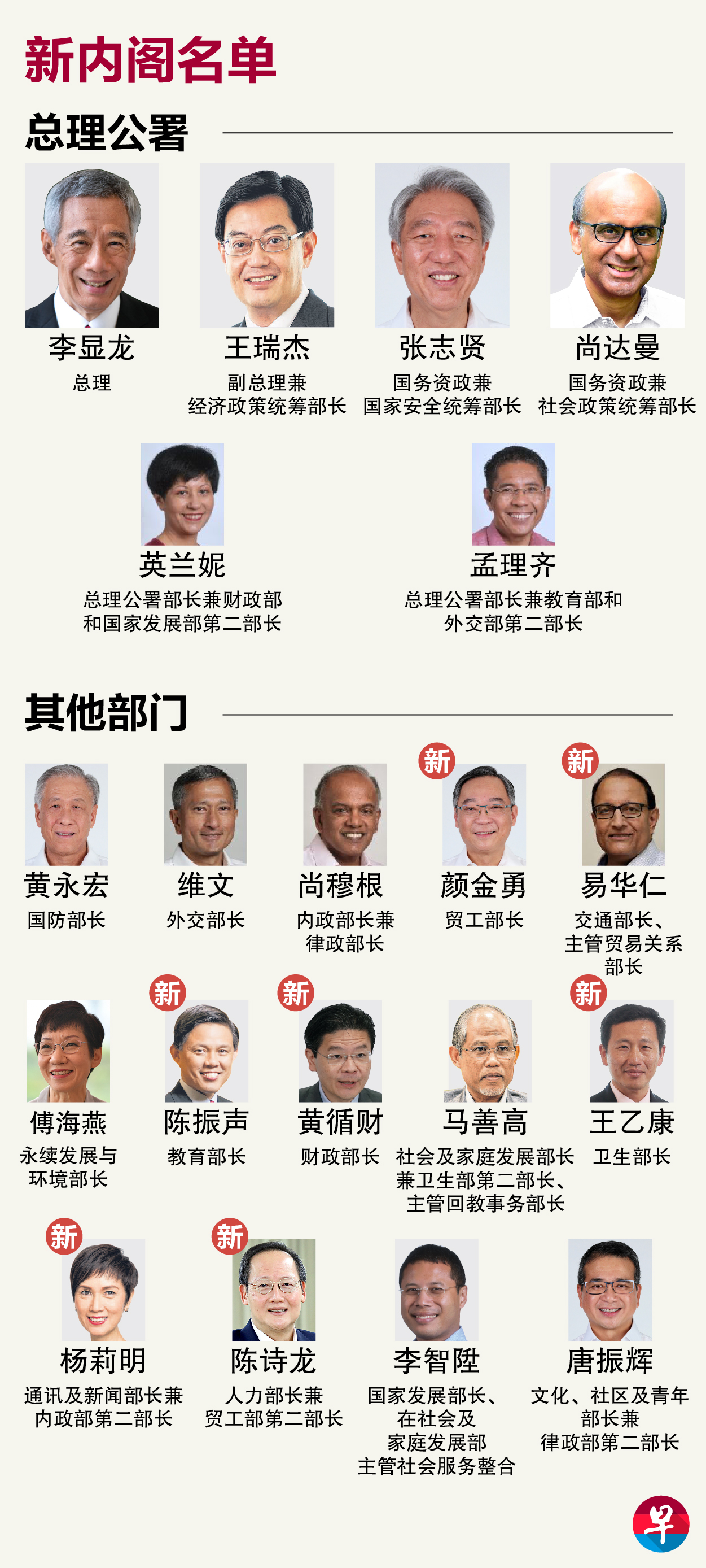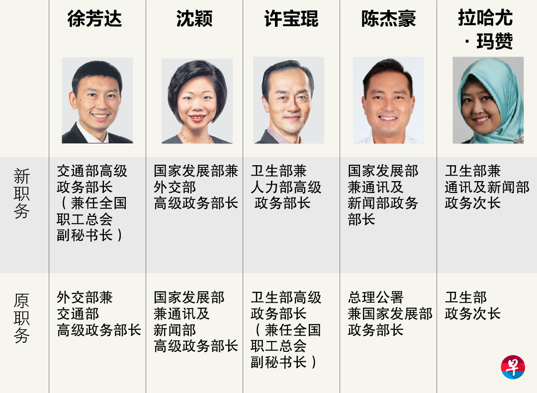 李智陞则职务保持不变,继续担任国家发展部长,同时在社会及家庭发展部主管社会服务整合。