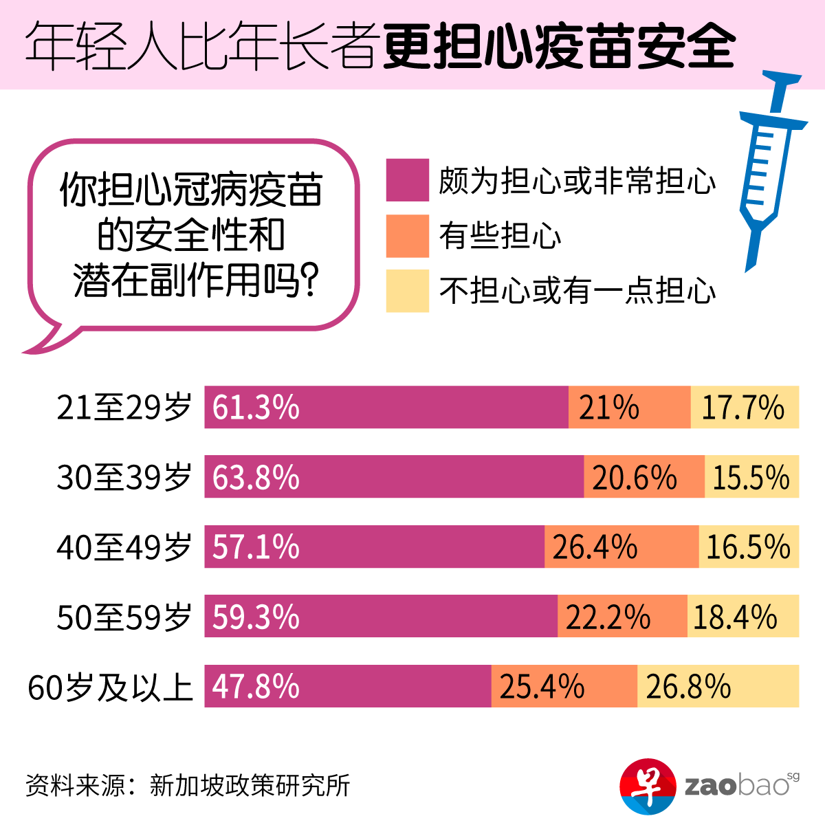不过,当研究员细看相关数据时发现,比起60岁及以上的年长者,年龄介于21至39岁的受访者,对疫苗安全和潜在副作用感到更忧心。
