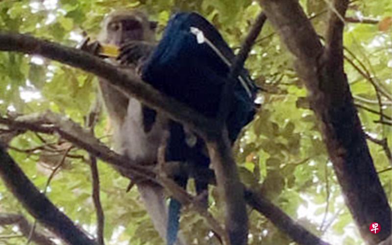 “猴子非常聪明,它抢走斜肩包后爬上一颗树,然后拉开斜肩包的拉链,打开包包将里头的物品一件件拿出来,包括妇女的身份证、一罐糖果、易通卡、手机和皮包等。”