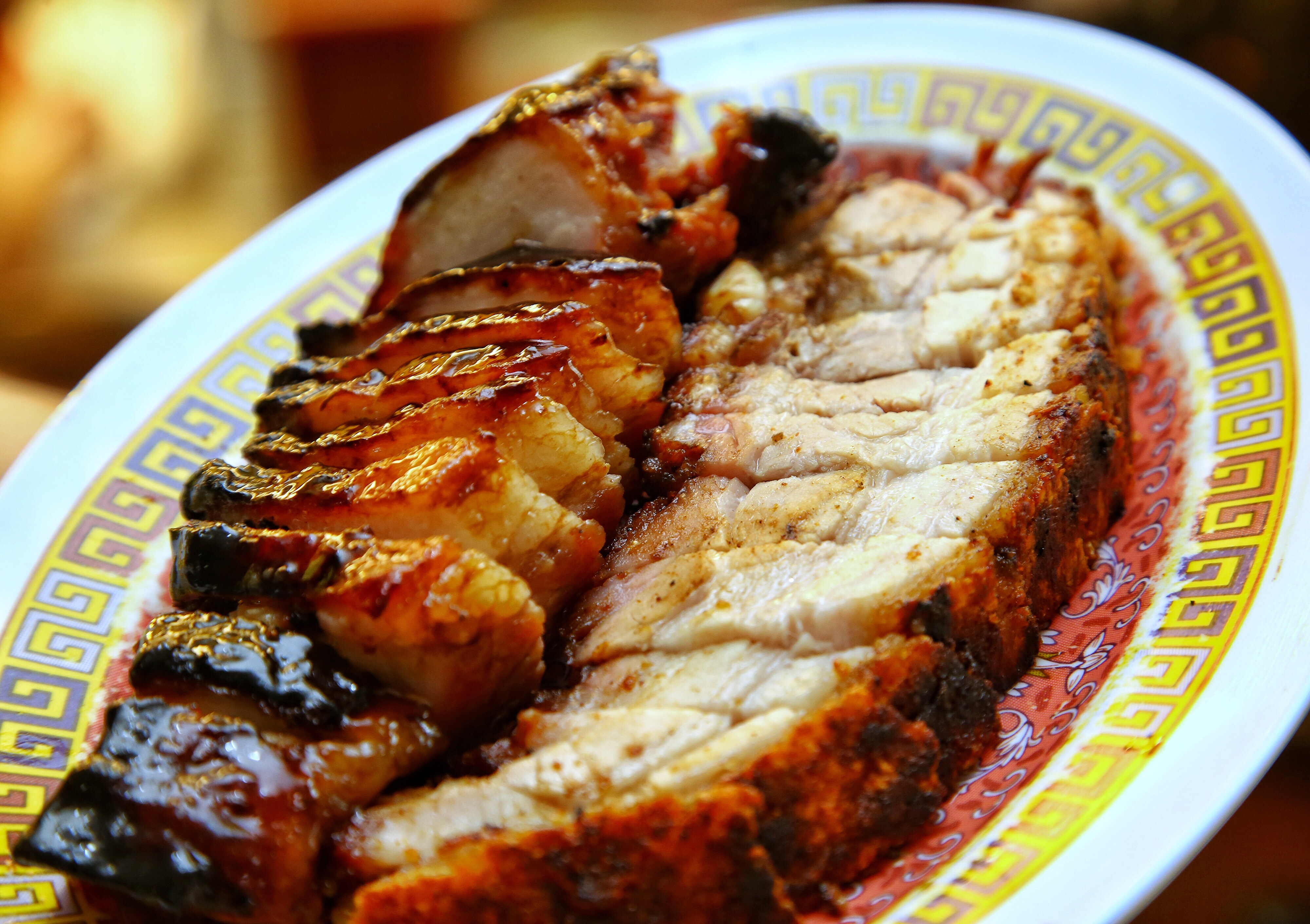 后来,“肥仔祥”烧腊便由此诞生,它坐落于“ABC砖厂巴刹和熟食中心”,如今已变成老字号。老板陈德祥和妻子一起管理两个档口,售卖叉烧、烤鸭、云吞面和饭等传统烧腊美食。
