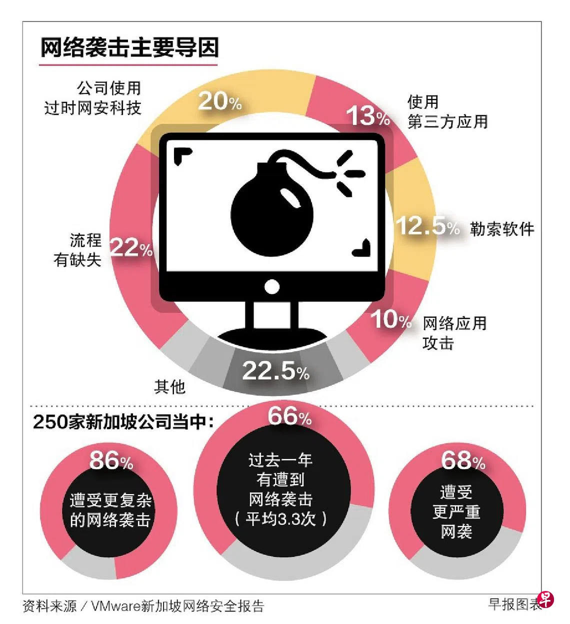 调查:三分二本地公司过去一年遭受更多网袭订户赠阅文章李思敏 报道leesimin@sph.com.sg冠病疫情让网络罪犯有机可乘。一项调查显示,将近三分之二的本地公司在过去一年遭受更频繁的网络袭击,其中超过八成表示是因为更多员工在家办公。上一篇翔鹰与星展银行五年内将42辆运钞车换成电动下一篇略高于前年 去年82%个案完成缓刑监视购买此文章