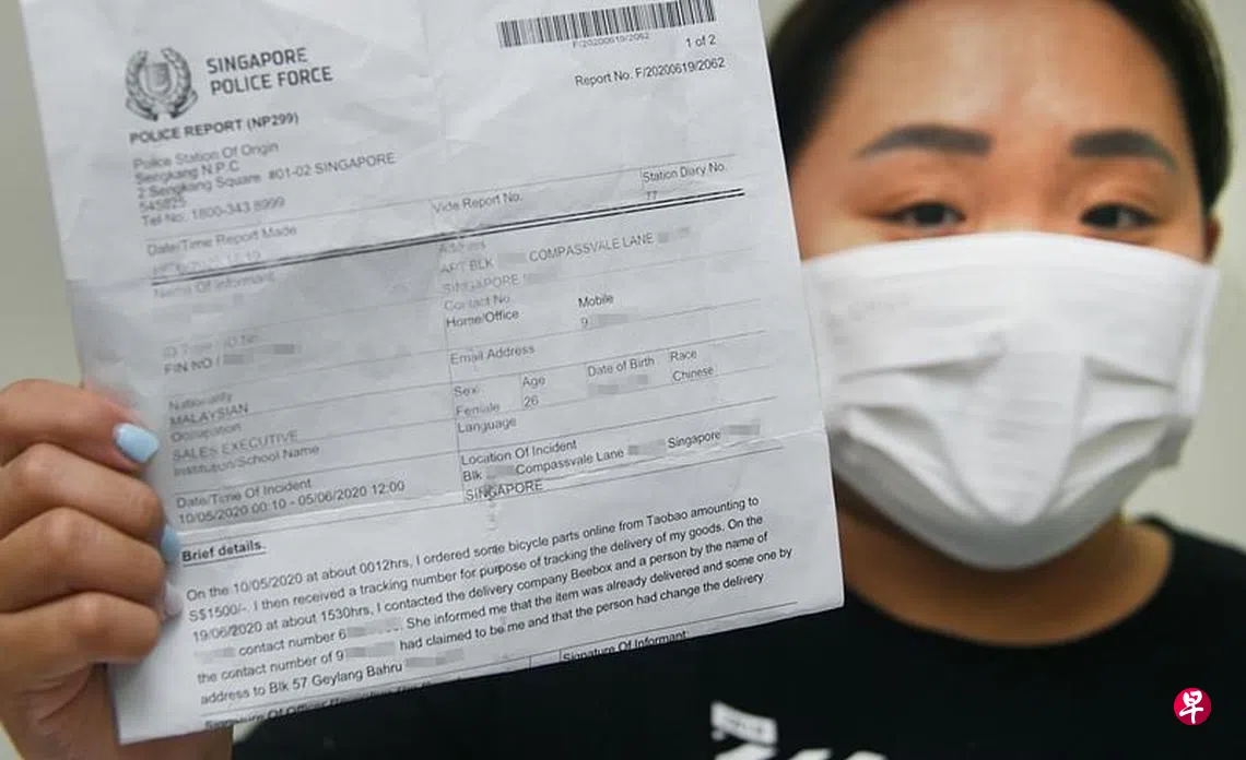 她叙述,当时因为自己的疏忽,在购买脚车零件时,给错了电话号码,结果包裹被人冒领。