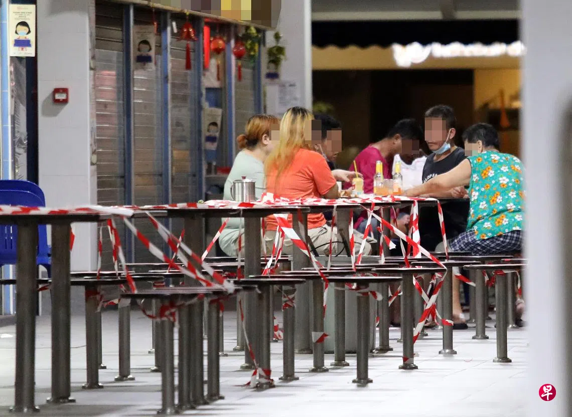上个星期五和星期六,记者连续两晚走访熟食中心时,发现有人聚集在角落的桌子。星期五晚上,三名妇女和一名男子更公然围坐在拉起封条的桌子。