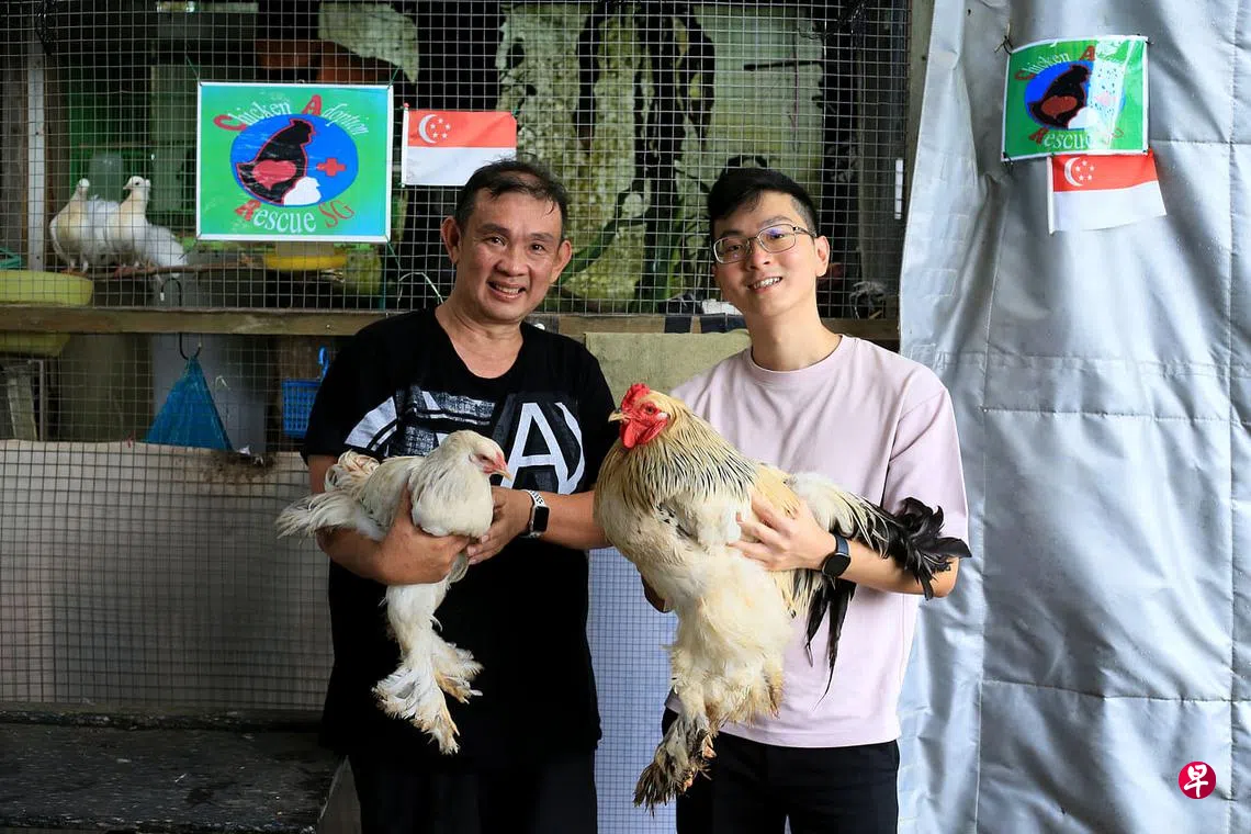 养鸡爱好者陈兴杰(23岁,新加坡科技设计大学学生)和王靖财(55岁,建筑公司老板)等人在去年6月成立了本地首家鸡只救助站Chicken Adoption Rescue SG(以下简称CAR)。