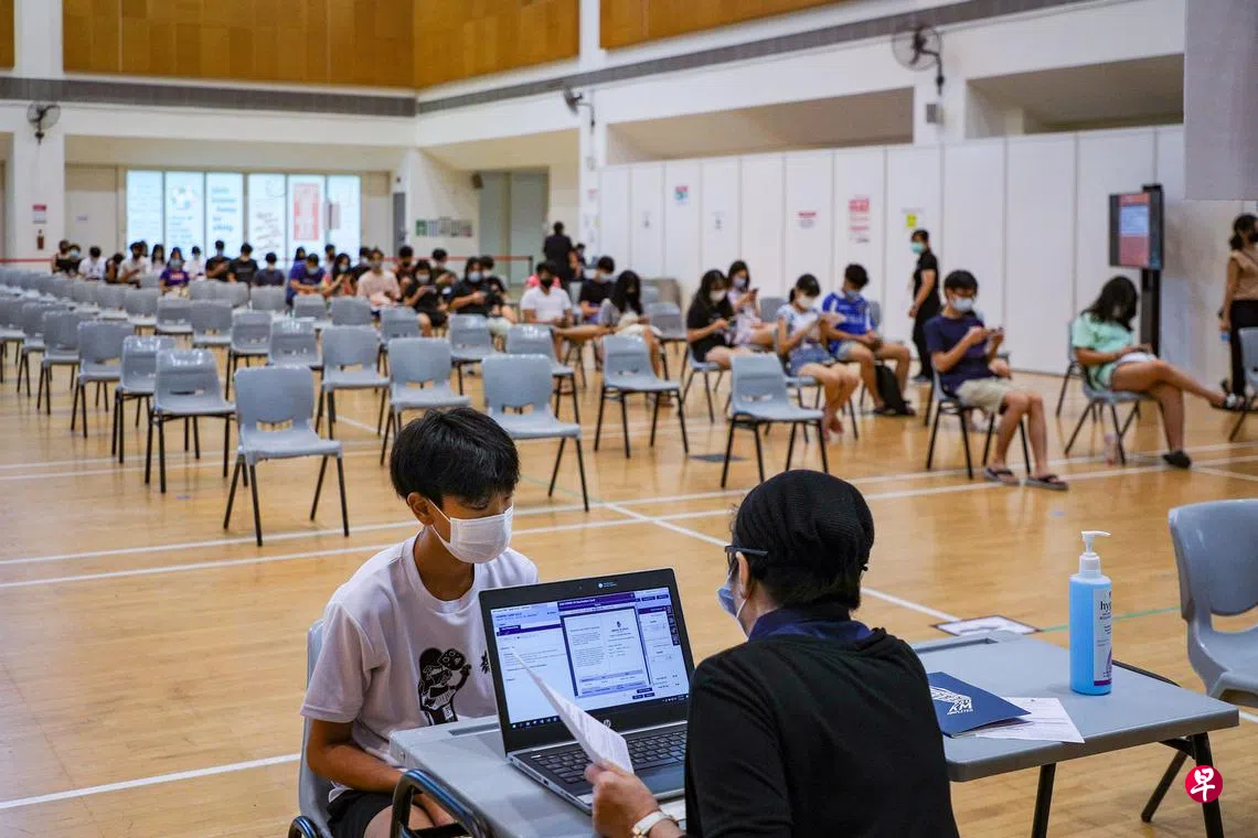 教育部发言人回复《联合早报》询问时说,教育部从本月1日起已向超过25万5000名年满12岁的小学生、中学和初级学院及高中生,以及理工学院学生发出邀请短信。截至昨天傍晚6时,超过20万人,即接近八成受邀接种的学生已预约;其中3万5000人已接种第一剂疫苗。