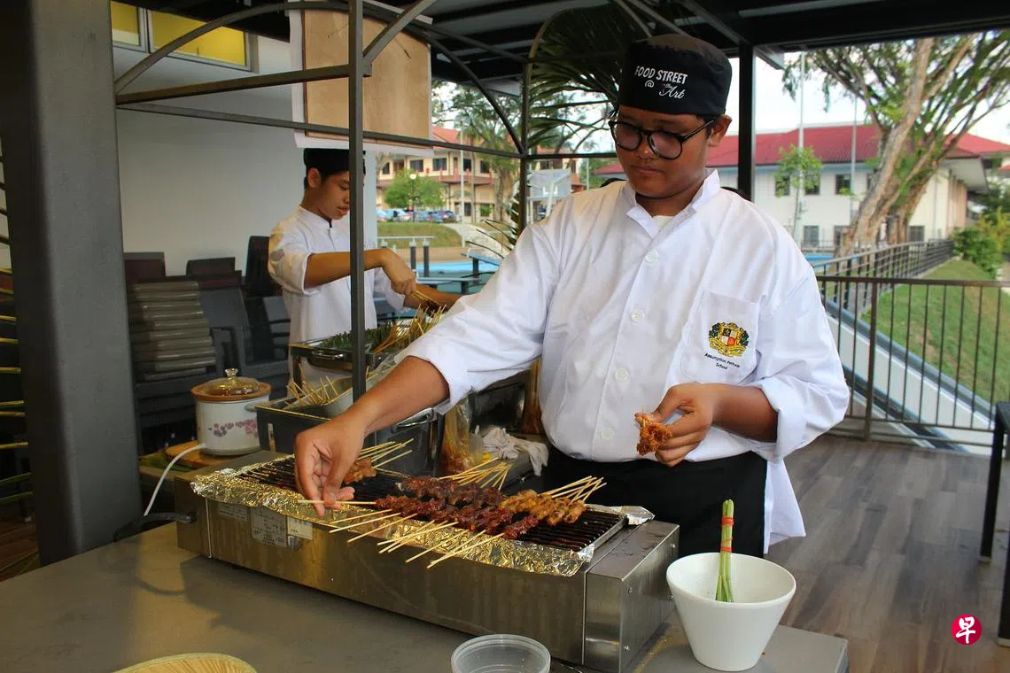 打造美食街让学生现煮现卖 圣升明径学校获颁教育部奖项订户赠阅文章圣升明径学校的美食街计划让学生在餐厅旁摆摊售卖食物,学生在学以致用的同时,也对经营饮食摊的工作有更深的体会。(圣升明径学校提供/摄于疫情前)学园胡洁梅 报道ohkm@sph.com.sg 培训上一篇国大副校长刘斌教授 获颁英国皇家化学学会百年奖下一篇前教师开创幼儿教具购买此文章