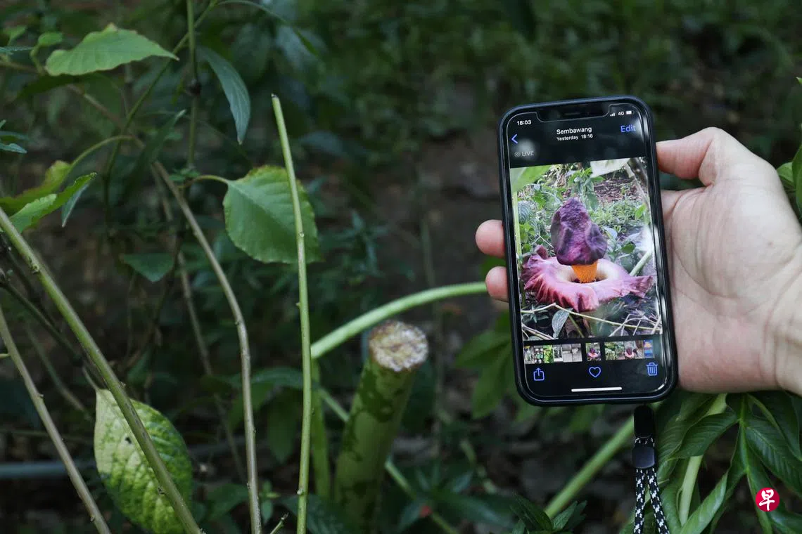 这株“巨花魔芋”生长于三巴旺弯第338座组屋附近的社区花园,那里种植各种各样的植物,包括木瓜树、红毛丹树等等,平时都由一些热爱园艺的居民负责打理。