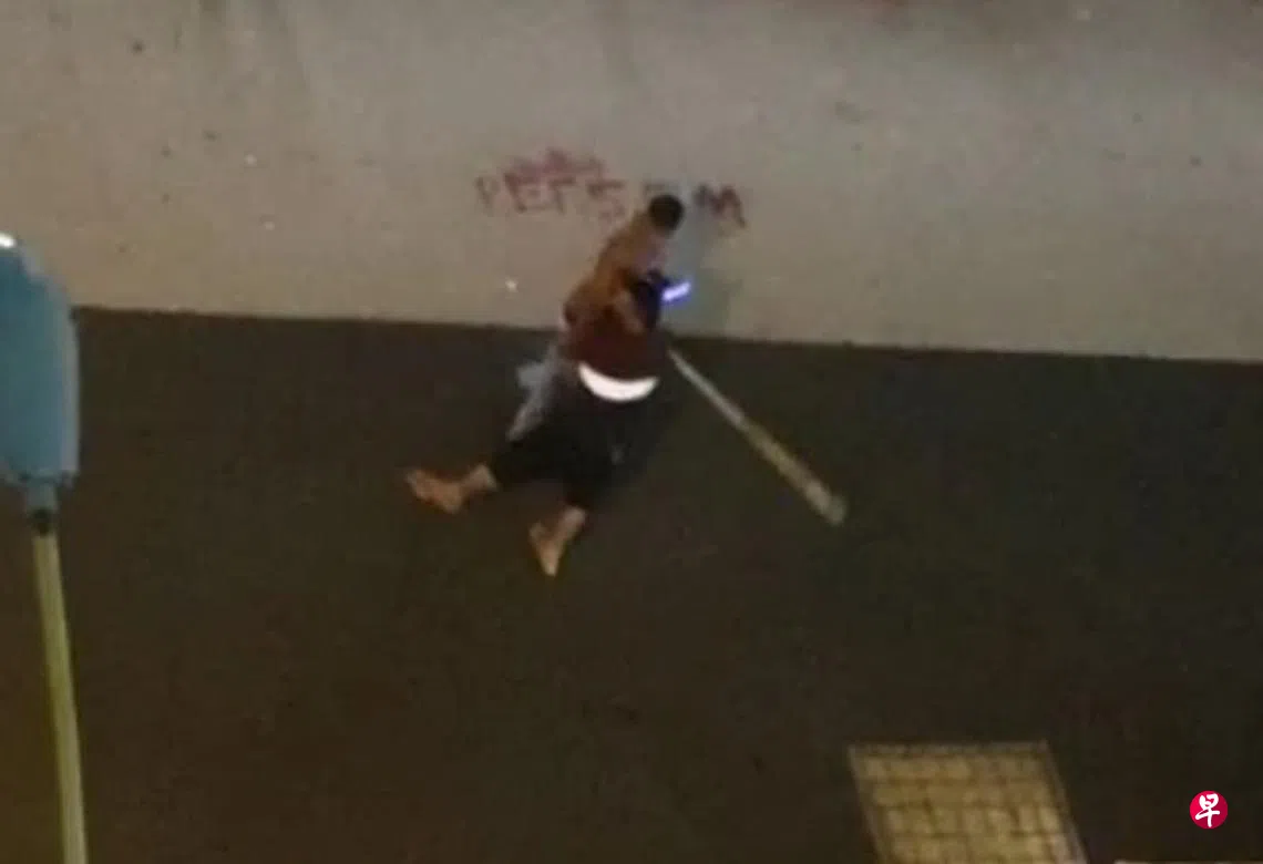后港2道第703座居民昨天(6月9日)凌晨时分被一阵喧闹声惊动,不少人从走廊或窗户往下看后,发现一名红衣男和赤膊男在露天停车场大声争执。