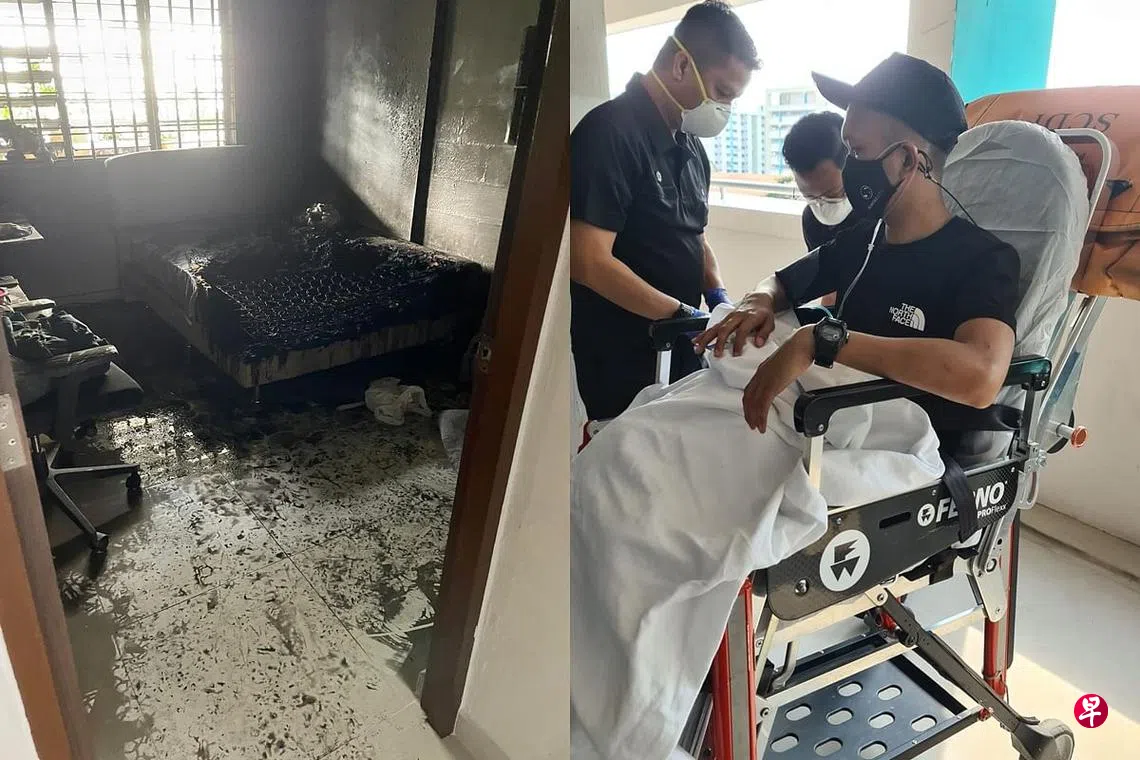 住在失火组屋的诺惹(Nurul Fadilah,31岁)说,今早她与丈夫突然看见邻居家冒出滚滚黑烟,立即赶往查看。当时单位大门未上锁,她蹲下查看时,发现一名穿着条纹衬衫的男子倒在房门口的地上。