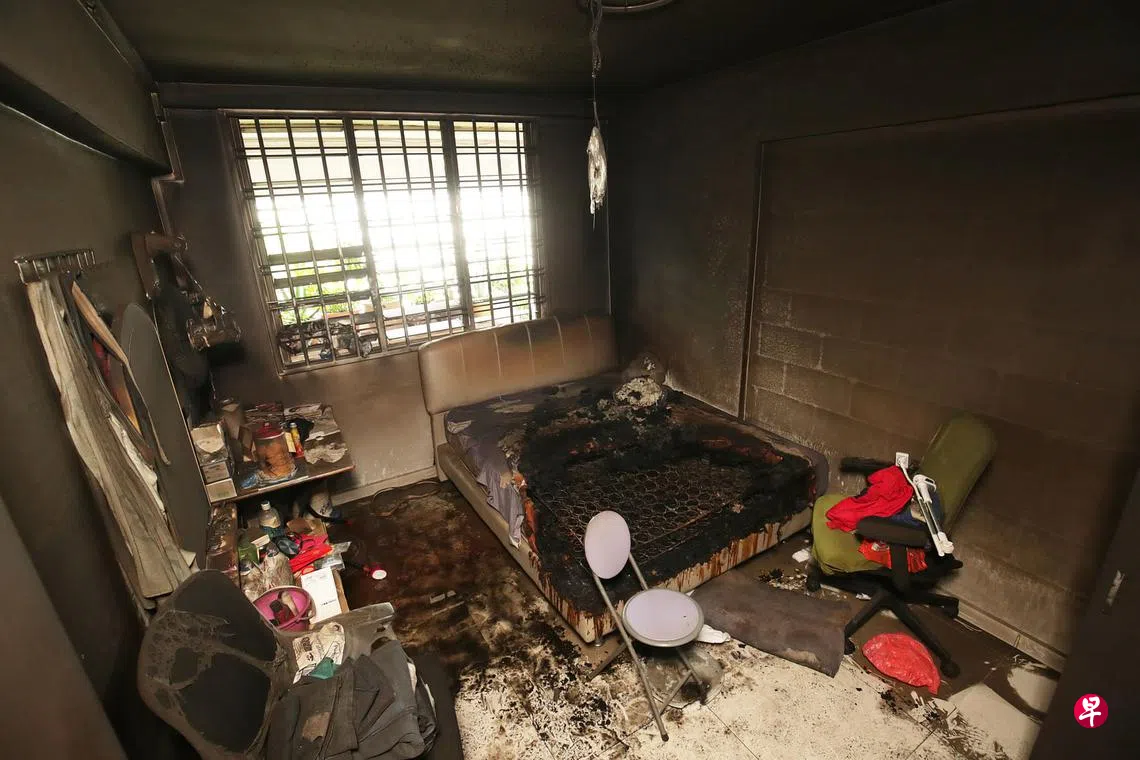 武吉巴督组屋单位失火 邻居冲入屋救出昏迷男子订户赠阅文章男房客的房间内,床垫大面积被烧毁,周边物品也烧得焦黑。(蔡家增摄)陈昱嘉 报道yujiatan@sph.com.sg 武吉巴督一个三房式组屋单位昨早(6月10日)发生火患,34岁男子昏迷倒地,楼下邻居听闻有人被困,用毛巾捂住口鼻,奋不顾身冲入屋内将男子救出,还因吸入浓烟被送院检查。火患武吉巴督上一篇保安园景及电梯维修三行业 渐进薪金模式新建议数月内公布下一篇辱骂拳打罗厘司机 脚踏车洋骑士罚5600元购买此文章