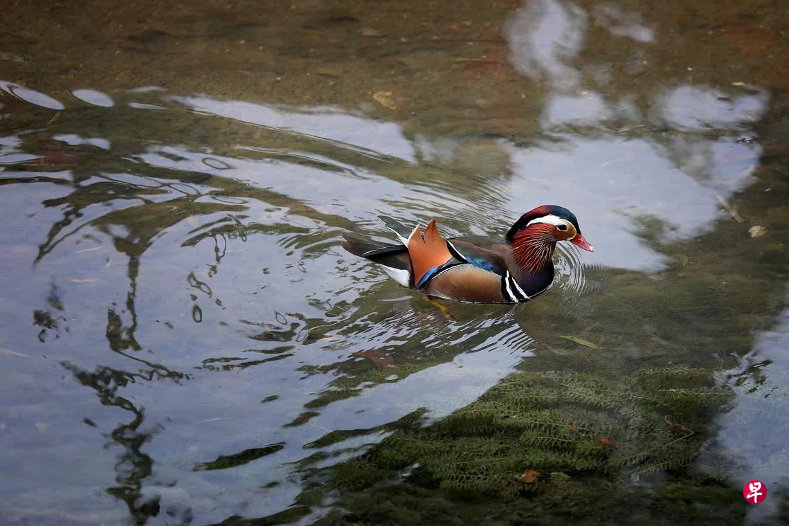 后港组屋区大沟渠出现少见的雄性鸳鸯,吸引鸟类摄影发烧友争相拍照,捕捉难得一见的画面。