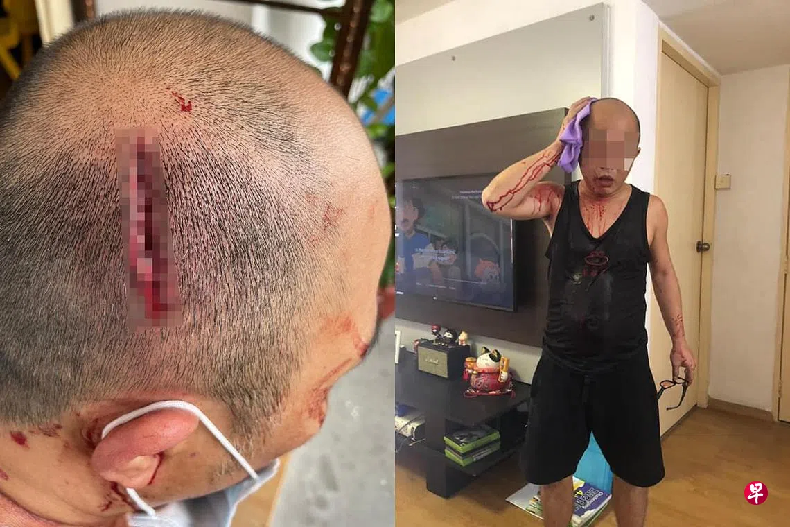 宏茂桥邻居纠纷酿流血事件!中年汉在屋外走廊擦窗时,隔壁六旬邻居疑不满对方移动他的脚踏车,一气之下操起系着锁头的铁链,连挥两次“流星锤”甩向中年汉,把中年汉打到头破血流,头部缝了五针。