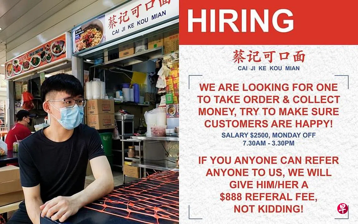 刚刚开业的面摊生意好,一天可卖出120碗面,但却迟迟招聘不到助手,21岁年轻老板在社交媒体贴文让网友帮忙介绍人,还答应给888元介绍费,一周内就吸引100人来应征。