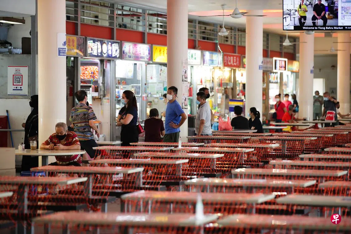 《联合早报》记者昨早走访中峇鲁巴刹与熟食中心,发现无论是一楼的巴刹还是二楼的熟食摊,人流相较以往的周六,有明显的下降。热门摊位前大排长龙的场景不再,一些档口甚至是门可罗雀。