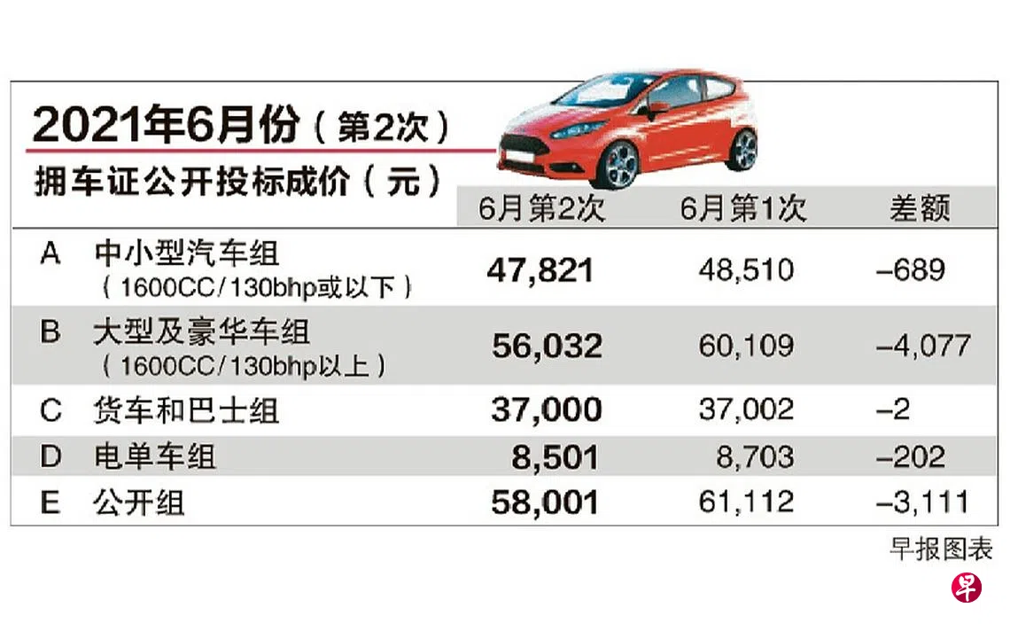 本月第二轮拥车证公开投标活动昨天结束,应付大众市场需求的中小型汽车(A组)拥车证成价下滑689元(1.4%),报4万7821元。