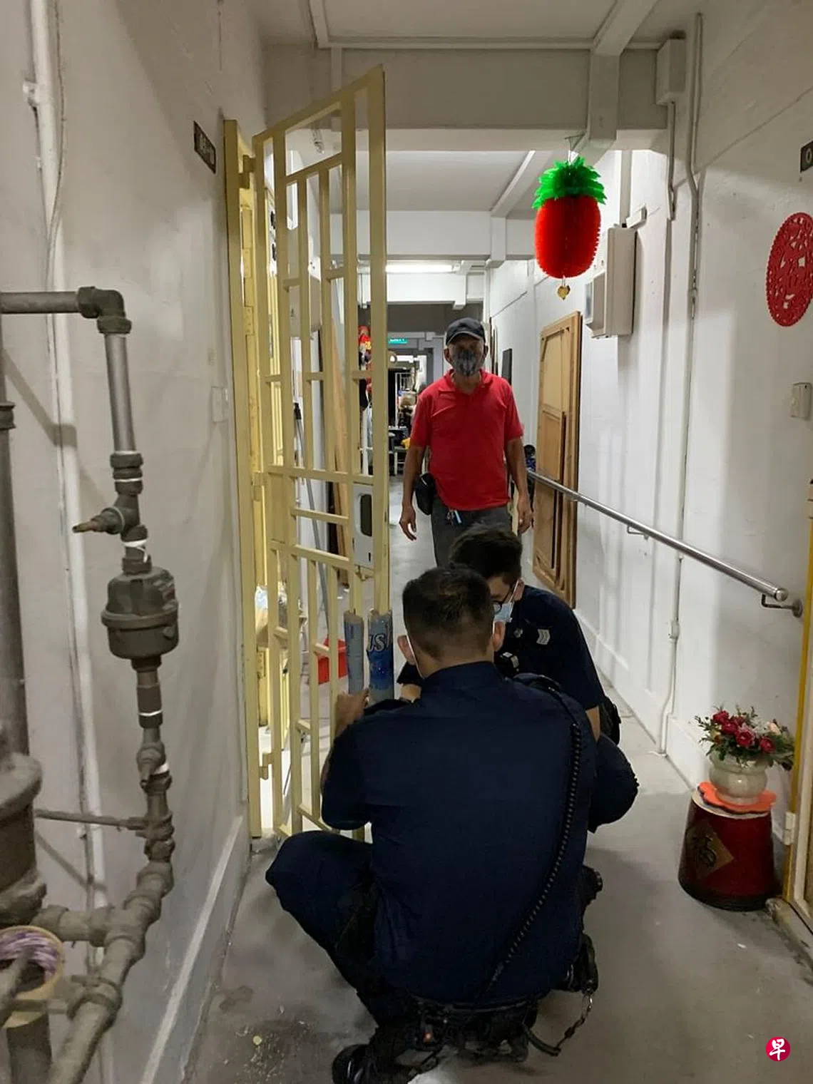 热心读者拨电《新明日报》24小时热线通报,上述组屋楼下聚集数十人围观,警员不断进出事发和邻居的单位,气氛紧张。