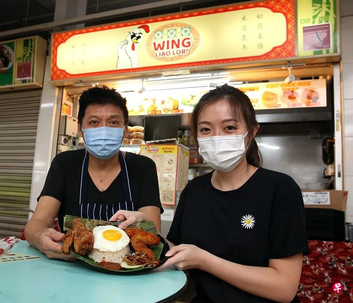 新航空姐因疫情停飞,近4个月零收入后,决定转换“跑道”,与当厨师的父亲在小贩中心联手卖娘惹餐。