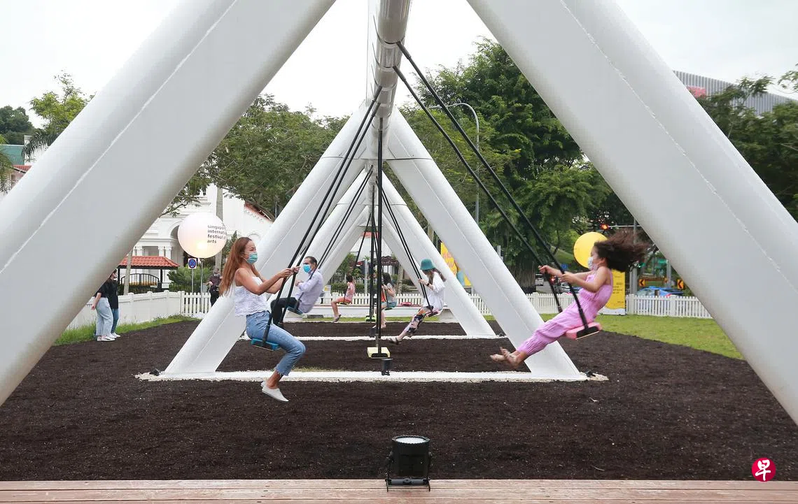 想重温儿时欢乐时光吗?公众可到多美歌一带坐上会“发出”动人音符的秋千,在一前一后的摆荡中携手发挥创意,荡出一首首让人暂时忘却烦恼的乐曲,就算处在艰难抗疫时刻也不忘透过音乐,鼓励彼此积极向前。