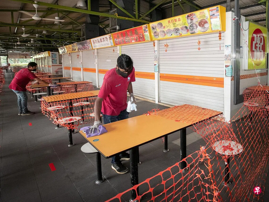 国家环境局答复《联合早报》询问时说,该局已和丹戎巴葛市镇理事会合作,在红山景熟食中心的桌椅上贴上标签,确保每组堂食的食客不能超过两人,每组食客之间也须保持至少一米距离。另外,每个摊位前的地面也贴上标志,以确保食客在排队时,彼此之间保持一米距离。当局将对那些没有遵守安全管理措施的食客加强执法行动。