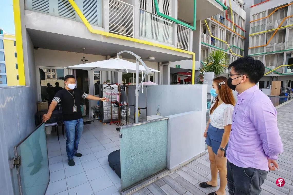 ERA产业分行营销董事陈野文(33岁)说,买家一般希望至少夫妻俩一起登门看房,早前在高警戒解封第二阶段有两人限制,基本上每周仅能安排到一组人看房,有时根本没有,但在条例放宽后首个周末,他就接到八组看房预约,刚过去的周末更增加到12组。