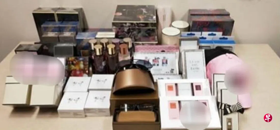 警方在扫荡行动中发现西部一个货仓里藏有各种仿造品,包括市价近100万元的冒牌香水、充电器和时尚眼镜等,两名分别为24岁和25岁的女子因涉嫌在网上贩卖仿造品被捕。