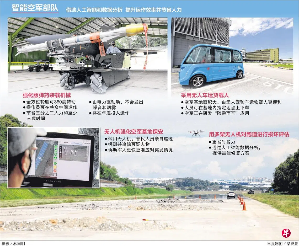 为了更有效应对未来作战需求,新加坡空军部队于2018年落实智能空军基地愿景。三年后的今天,空军部队在巴耶利峇空军基地通过采用工业4.0科技,使几个智能科技项目处于不同的试行阶段。当中最快会在今年底使用的便是上述的强化版弹药装载机械(Enhanced Munitions Loader)。