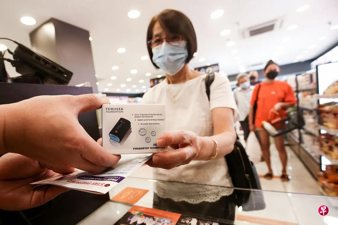 淡马锡基金会昨天开始派发免费的脉搏血氧仪,领取处未出现排队长龙,但前来领取的人流不断,每10分钟就有一两人,年长者居多。