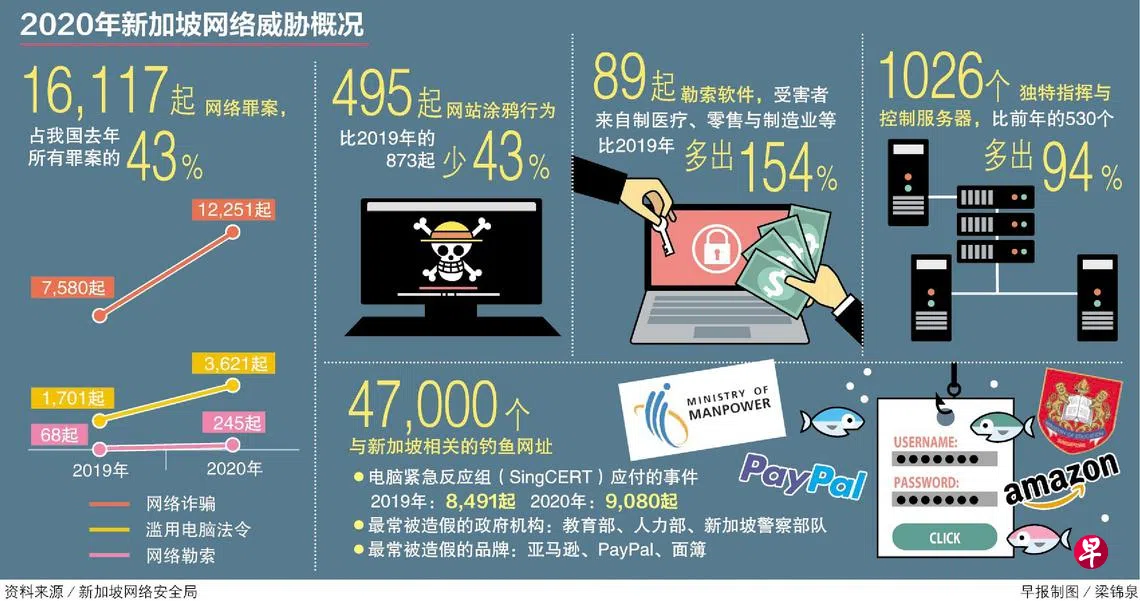 新加坡网络安全局昨天发布的《2020年新加坡网络概况报告》显示,疫情期间人们容易感到不安,而国际犯罪分子利用这点,发起了一系列针对个人和企业的网络攻击。
