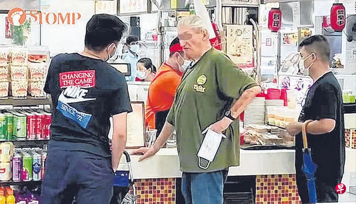 一位名为艾伦的网民向STOMP绘述,当时他正在咖啡店内,目睹了整个过程。从他拍摄的视频中,可见身穿绿衣的洋汉站在茶水档口前,期间也听到他说了数声“我很生气”,画面中也可见洋汉没戴上口罩,而是将口罩拿在手上。艾伦在文中说,随后一名年轻人走上前去和洋汉交涉,试图让他停止喧闹。