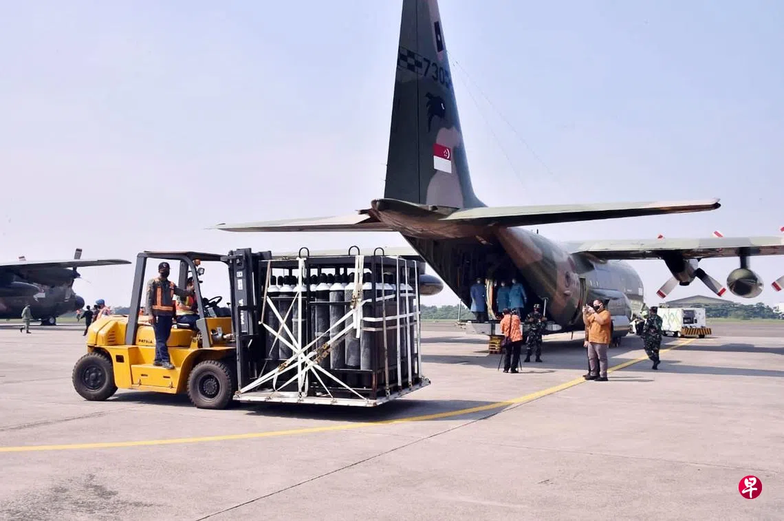 新加坡空军部队昨天派出两架C-130运输机,将这些医疗用品送往雅加达。