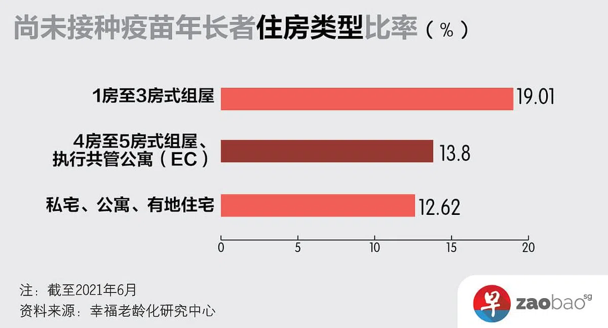 研究也显示,尚未接种者当中住在一至三房式组屋的住户占比19.01%,占比最高,其中有7.11%不愿接种疫苗。从社会经济的侧面来看,接种疫苗的时间成本在不同收入群体之间有一定的落差,较低收入群体未必能从工作中抽身前去打疫苗。