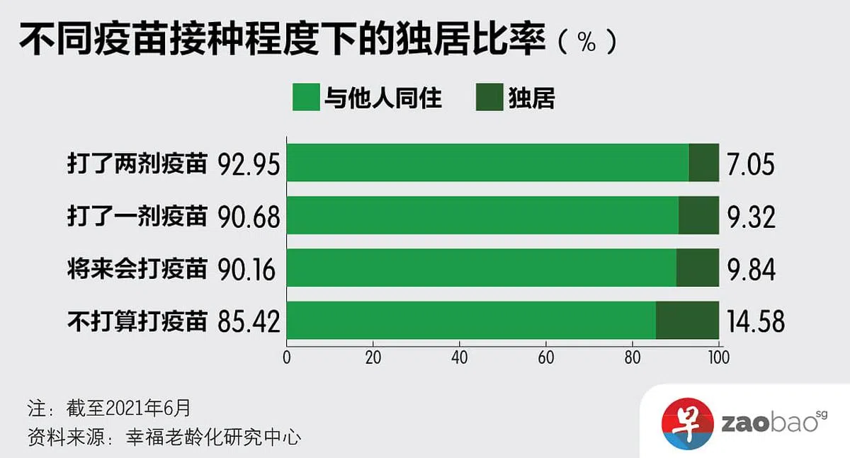 此外,报告也发现不愿接种者当中有14.58%是独居老人,他们也更需要外界的支持和帮助才能获取接种疫苗的信息。报告指出,在缺乏社会关怀的条件下,接种疫苗的意愿也会因为与社会脱钩而减弱。