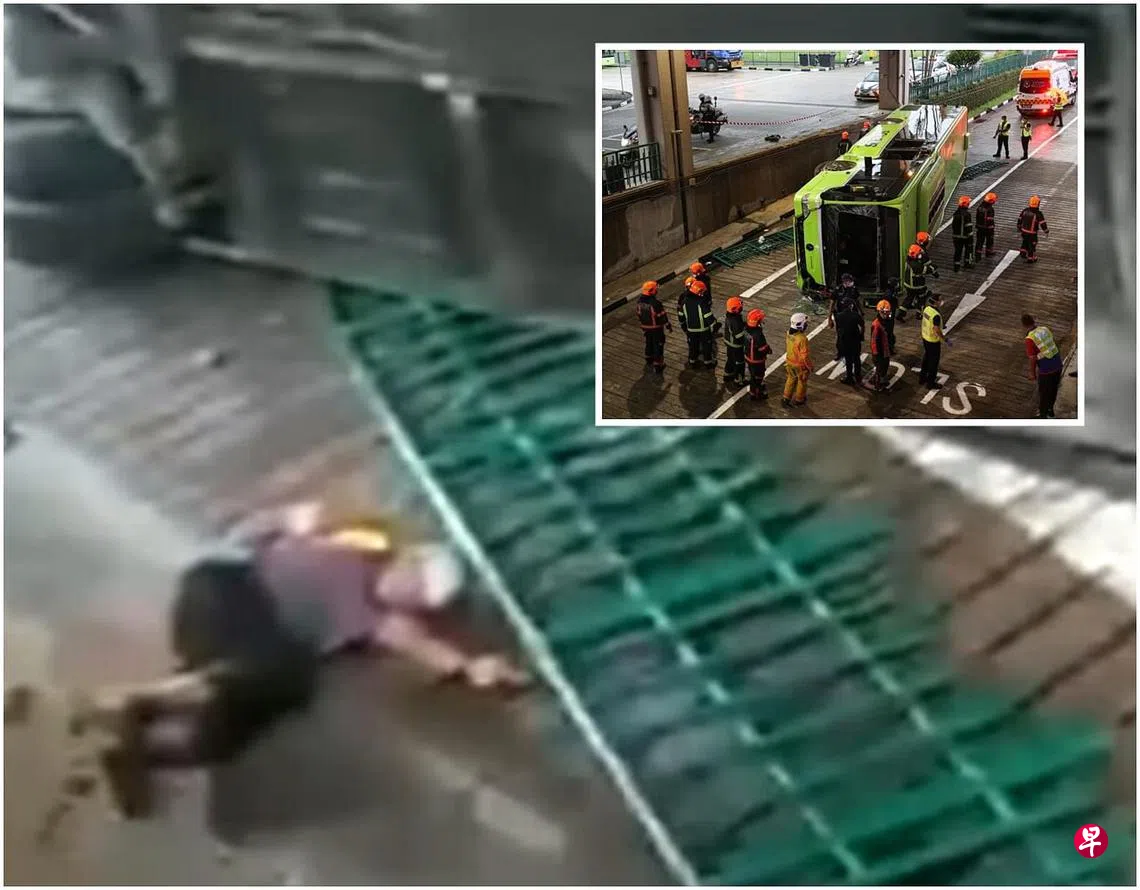根据SG Road Vigilante今天中午上传的现场视频,拍下新捷运巴士车长险些被压在车底的惊险一幕。