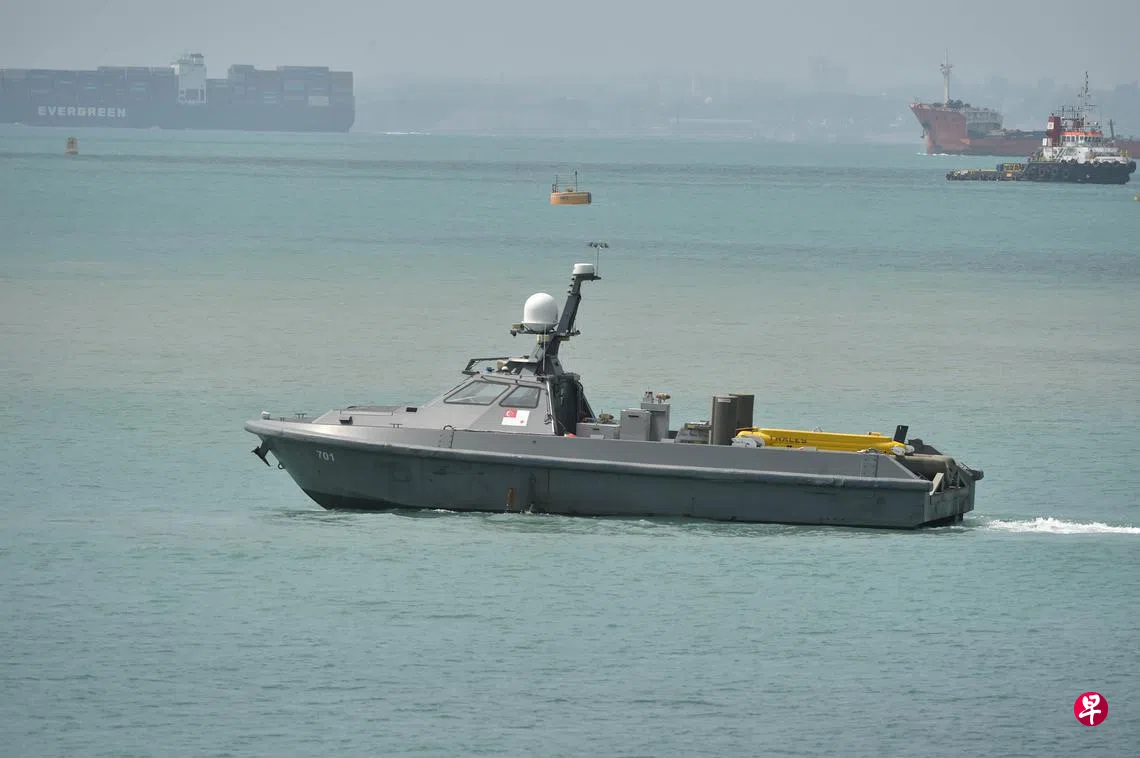 海军今年1月底在南部岛屿附近水域进行鉴定,由装载一次性销雷器(Expendable Mine Disposal System)的无人驾驶遥控水面侦察艇(Unmanned Surface Vessels,简称无人艇),在模拟情境中用实弹引爆水雷。