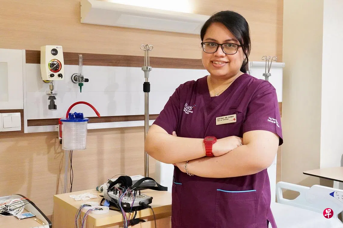 对于睡眠严重失调的病人来说,睡眠技术师莎菲娜丝(Shaffinaz Binte Abd Rahman,36岁)简直是“睡眠天使”,有办法让多年睡不好觉的他们,有一夜好眠。