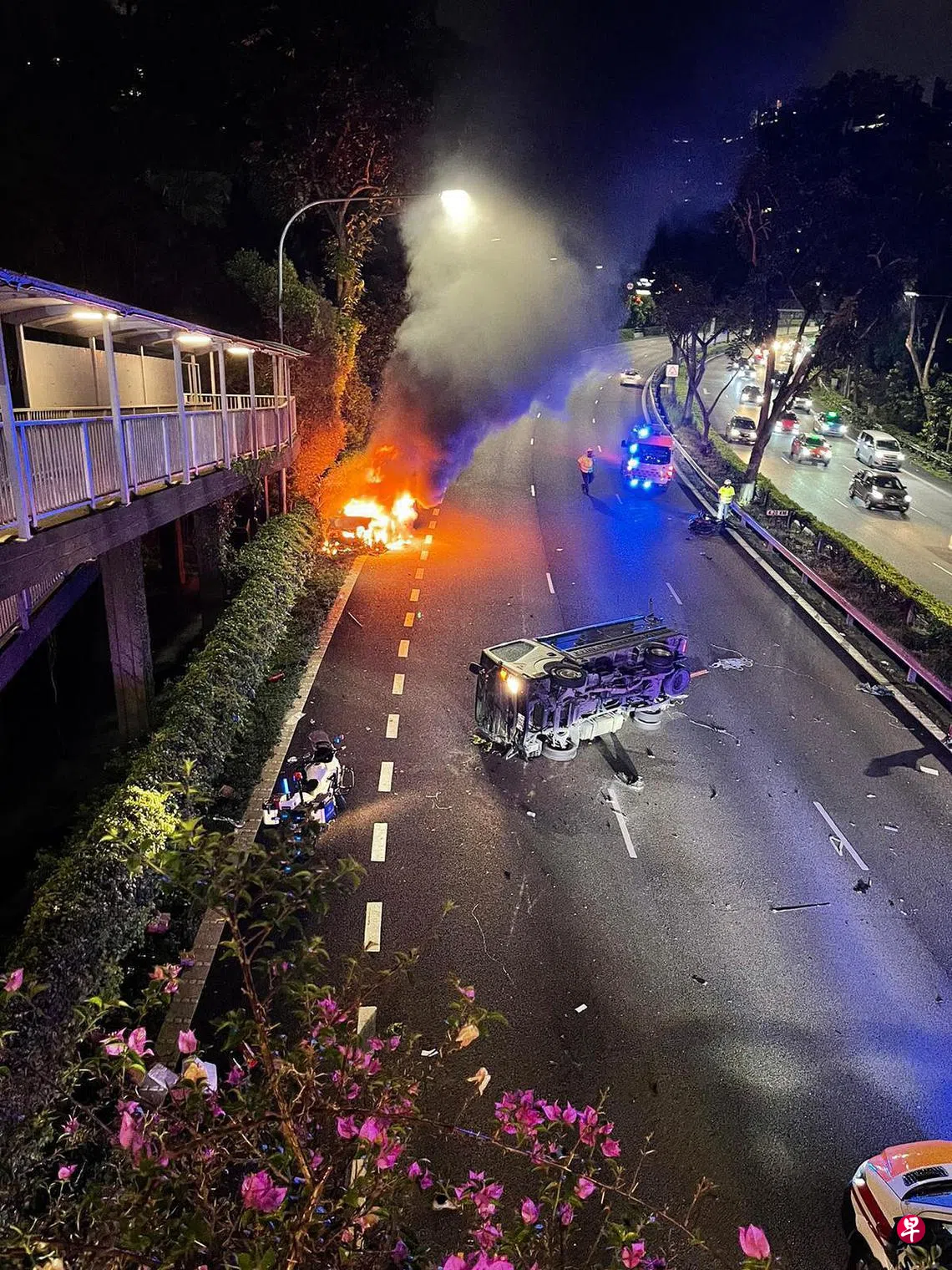 中央快速公路发生严重车祸,一辆轿车不知何故失控引发连环车祸,殃及一辆罗厘、两辆电单车,以及一辆德士。轿车失控撞向路旁大树后起火燃烧,女驾驶及时逃出车外,两分钟后车子爆炸。总共有七人送院,其中一名骑士抢救不果身亡。