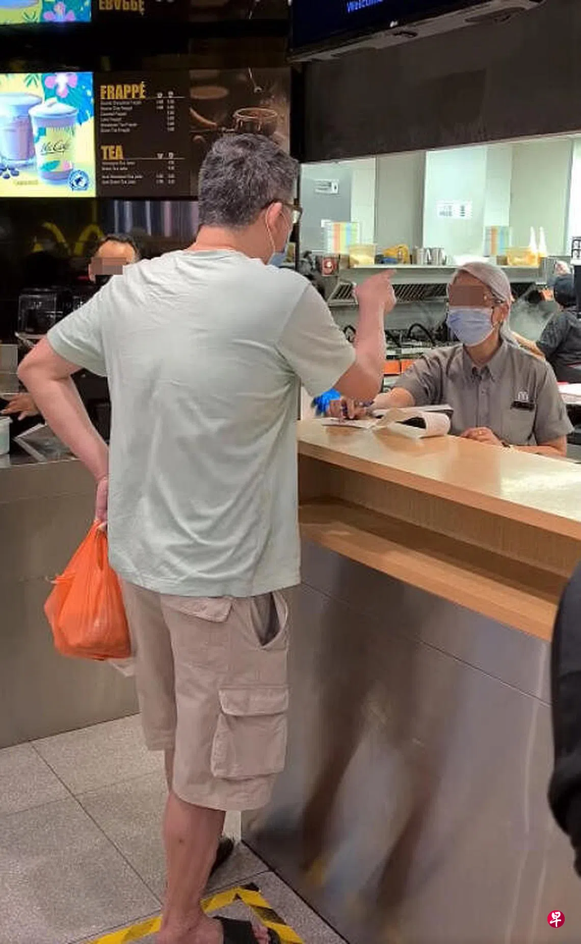 根据网上的一则视频显示,一名身穿灰色上衣及棕色短裤的阿叔,当时在快餐店柜台谩骂快餐店的经理。他一再表明对经理不满,却没说出所为何事,甚至屡次放话让职员报警。