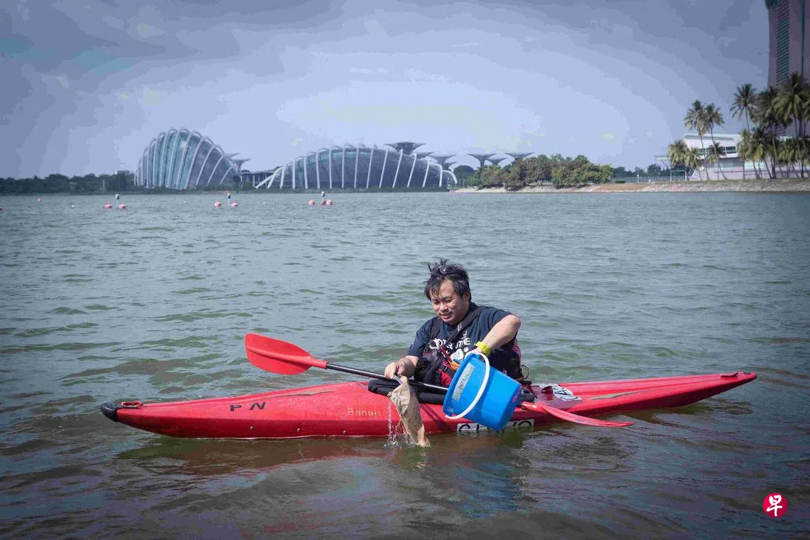 刘松盛指出,这也是为什么人协积极推动“护洋行动”(Project Blue WaVe),除了让人们了解保护水道的重要,也不时会划着皮艇到水中捡起飘落的垃圾。