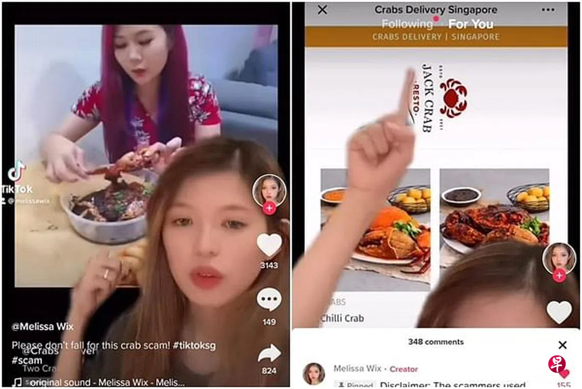 被指欺骗的广告视频会显示一个叫做“crabs delivery singapore”的账号,点击则会出现一个叫“Jack Crab Resto Singapore”的网站,网站内有多款螃蟹在做促销,仅9.99元。另外,该广告用的是本地网红“Esther Hillary”在家吃螃蟹的视频。